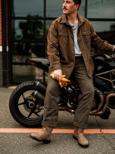 Material and specificationsThe rugged profile of the #2529 Rigger boot is complemented by a soft nubuck leather in mushroom.Premium water-resistant oiled nubuck leather